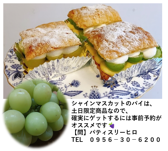 こちらでは、栽培農家から直接仕入れた大粒のシャインマスカットを「これでもか!」と盛り込んだパイが毎年大好評なのですが、人気商品なので、どうしても売り切れてしまう日が多いそうです。
