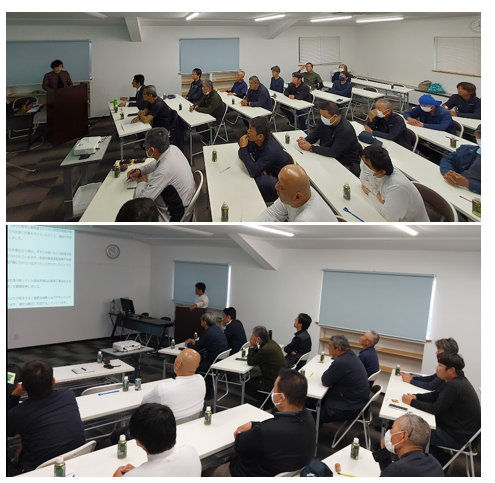 その後は、恒例の全社員参加による安全衛生会議を開催いたしました。稼働中の現場の進捗報告や安全講話を発表し、法律に関する学びも深めました。