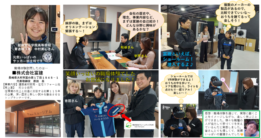 栄えある第1回目は、大村市に本社を置く株式会社富建です。グリーンテック九州取材スタッフも同行し、キャプテンを務めた中村美心(みこと)さんの職場体験の様子をレポートしてきました。